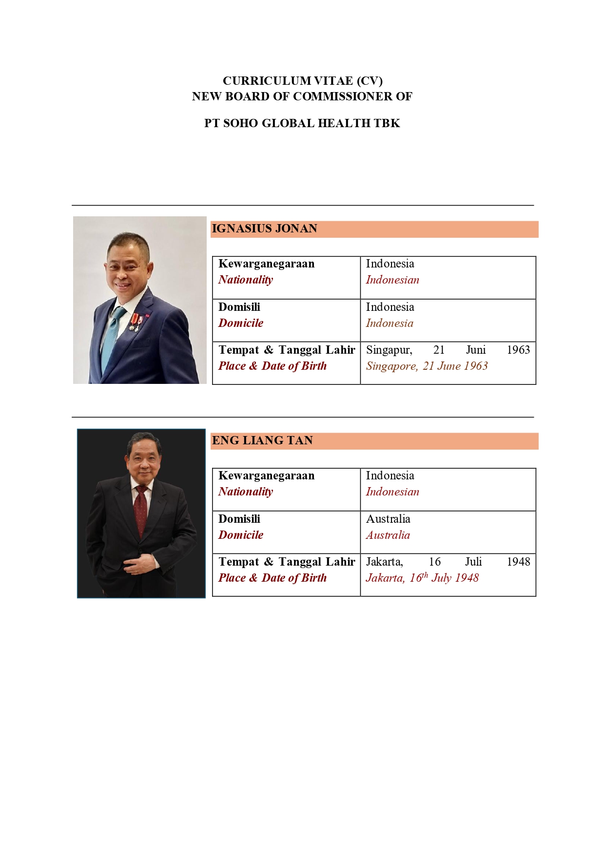 | Contact | Corporate Secretary Tel : 62-21-2985-88888 Fax : 62-21-2985-8800 E-mail : corporate.secretary@sohoglobalhealth.com |