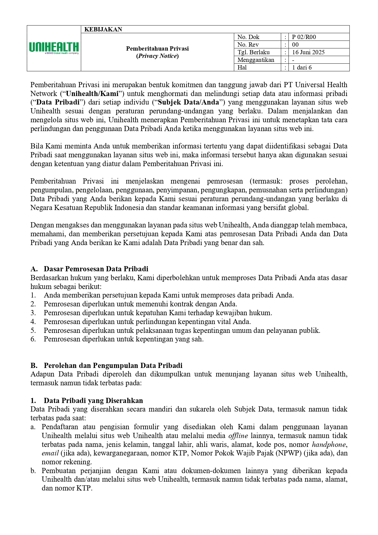 Pemberitahuan Privasi - UHN