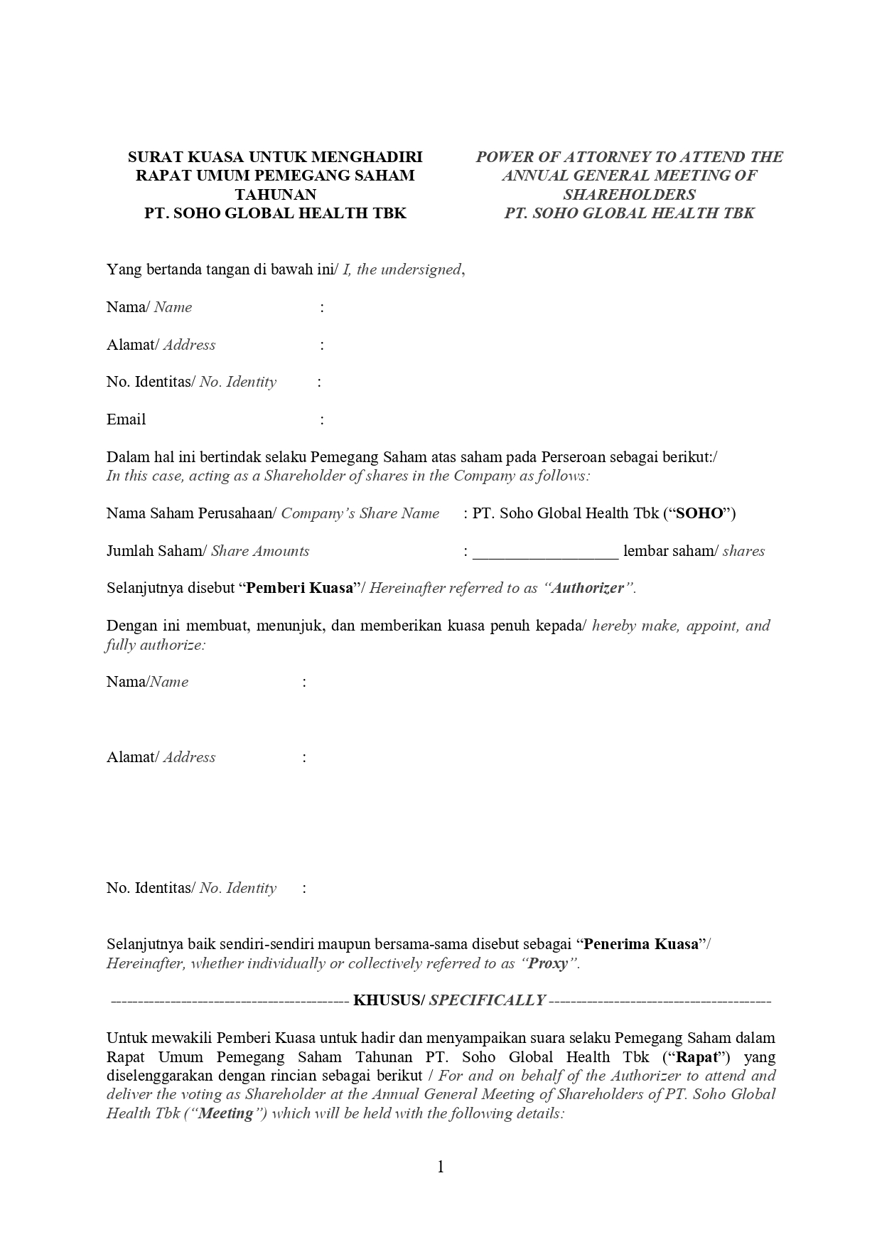 | Contact | Corporate Secretary Tel : 62-21-2985-88888 Fax : 62-21-2985-8800 E-mail : corporate.secretary@sohoglobalhealth.com |